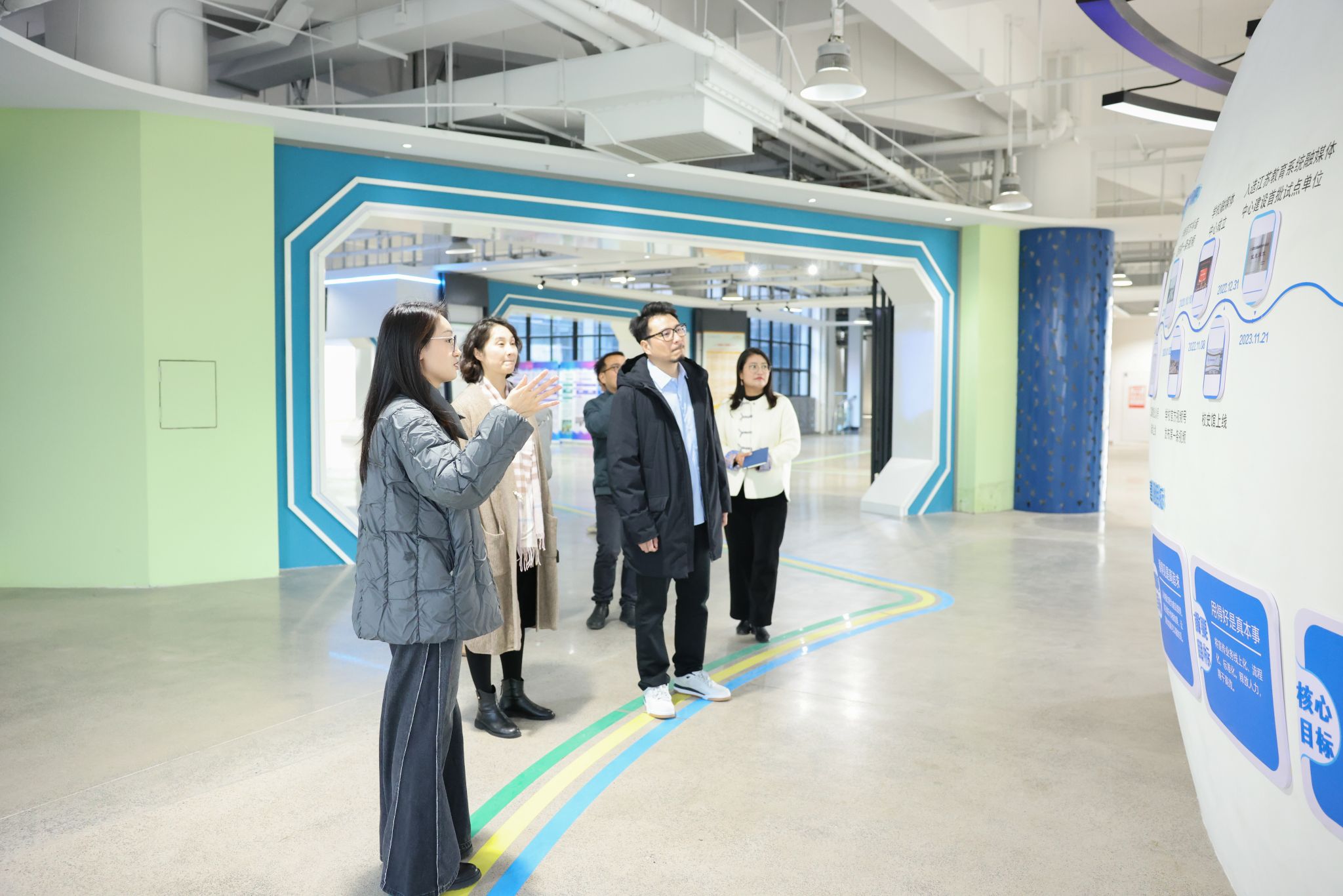 讲座前,姬云涛、单筱婷及江南大学党委宣传部相关教师参观了学校融媒体中心、网络思政工作中心等场所,详细了解学校在融媒平台建设、内容生产流程、网络育人及学生团队培养等方面的举措与成果。