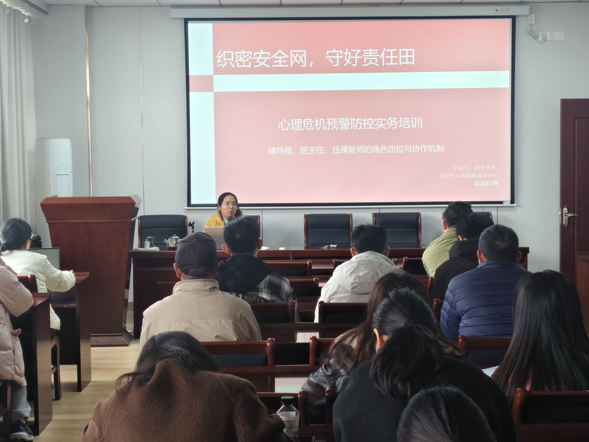 此次系列培训对象涵盖全校所有二级学院教师、班级心理委员及后勤保卫系统,进一步延展了心理危机四级预警网络的深度与广度,为构建全员参与、全程关注、全方位渗透、全领域覆盖的心理育人格局奠定了坚实基础。