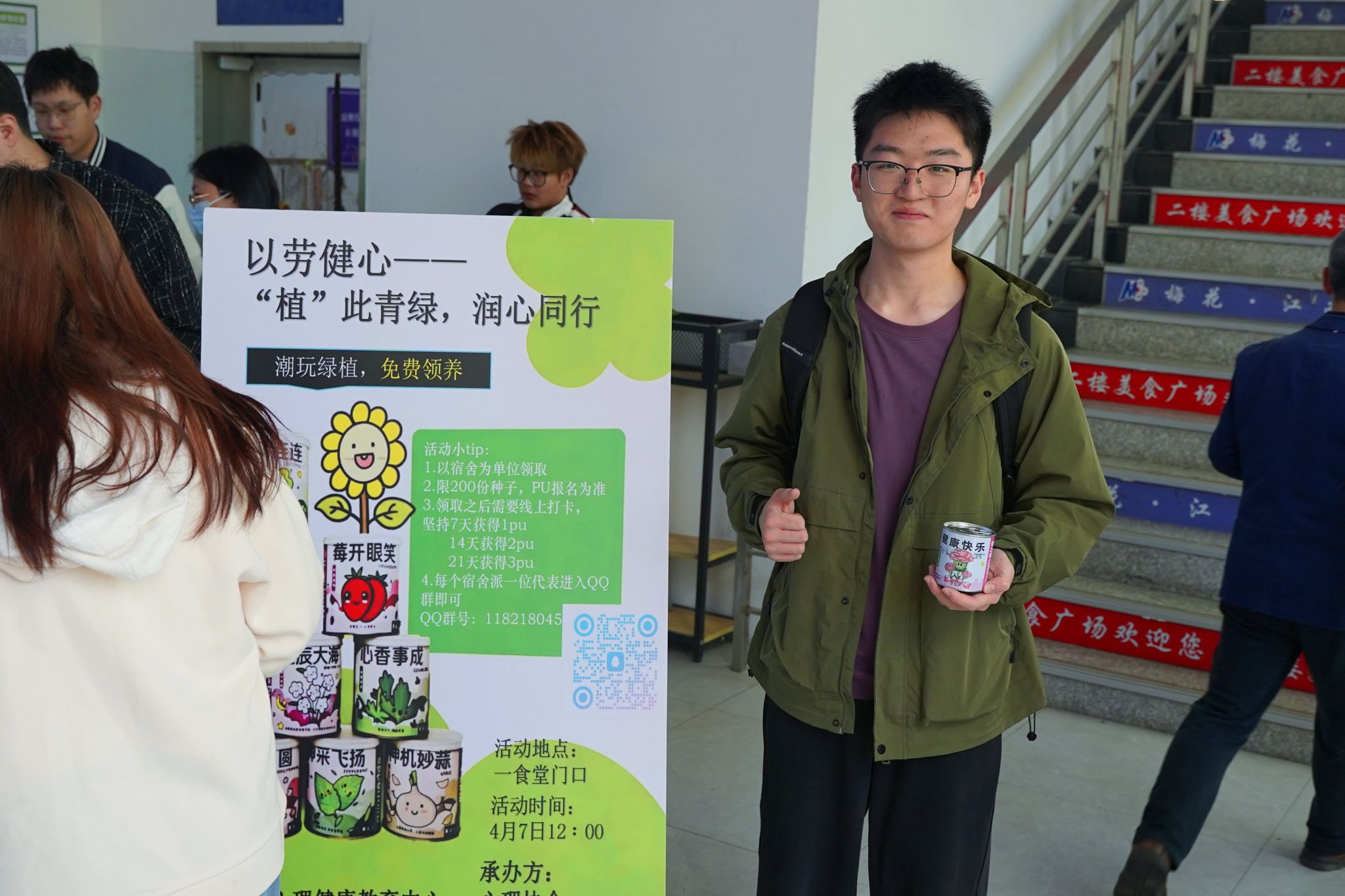 据活动组织方介绍,本届宿舍小绿植领养活动分为现场领养种子和后期宿舍养护打卡两个环节。种子领取以宿舍为单位,领取当天完成种植并启动打卡,要求参与者连续21天记录绿植生长情况,上传生长图片、描述养护感受等。未能领取到绿植的同学也可自行种植植物进行观察并坚持打卡。该活动已连续开展三年,深受学生欢迎。