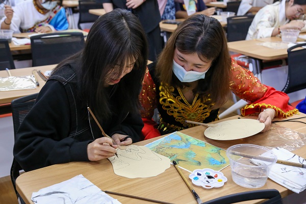 为增进我校各民族学生交往交流交融,使各民族学生在体验中感受中华传统文化之美,传承中华优秀传统文化,5月23日下午,“感悟中华传统文化之美”—“手绘扇面画 共育团结花”传统文化体验活动在大学生事务中心青智库举行,来自全校各民族近50名学生参加,校团委公共艺术研究室曹亮老师带领学生认识中国十大传世名画之一《千里江山图》,并引导学生将画作片段手绘在扇面中,在体验中感悟传统文化的魅力。