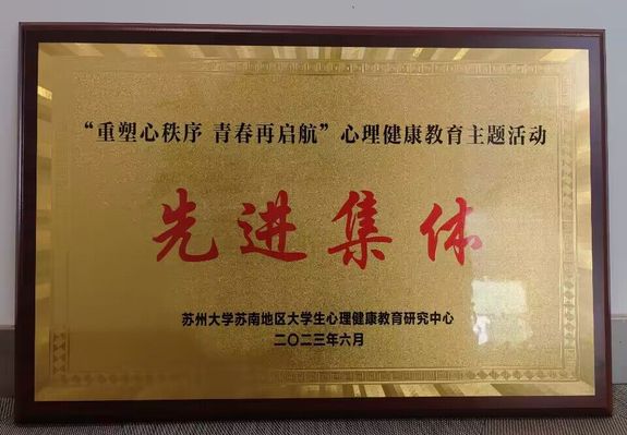 为贯彻落实《“重塑心秩序 青春再启航——大学生心理健康江苏行”主题教育》的精神,促进各高校积极组织各项有益于大学生身心健康的教育活动,促使大学生构建健康和谐的身心秩序,以阳光心态、强健体魄,开启青春筑梦新征程。苏南地区大学生心理健康教育研究中心对苏南地区各高校在3.20 至 5.25 期间举办的大学生心理健康教育主题活动组织了评比工作。经过专家组成员认真评审,我校“青春恰如春夏,’锡心’陪伴成长”3.20、5.25系列心理活动,在参评的32所高校中脱颖而出,荣获“先进集体奖”。