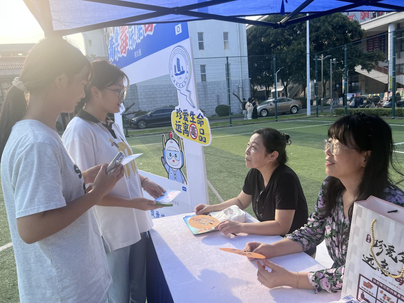 10月17日,学校在学生事务服务中心前小操场同步开展“物联筑防线,科技护无毒”有奖竞答活动,将科技互动与禁毒知识紧密结合。活动中,参加学生通过微信扫码进入物联网小程序搭建的线上答题平台参与答题,提升了答题趣味性。完成竞答后,学生可凭小程序生成的“答题合格证书”现场领取定制文创,实时数据反馈与即时奖励机制,有效激发了学生参与热情,禁毒知识传播效果显著。